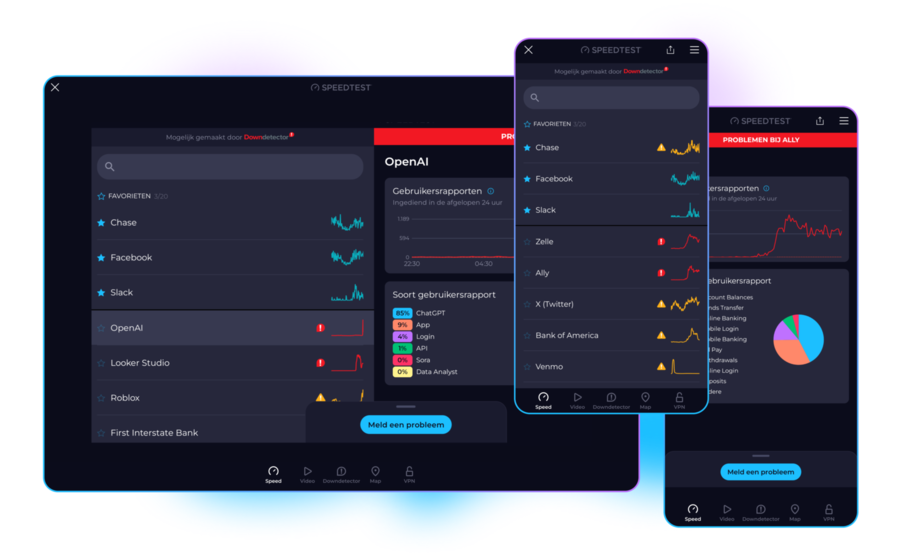 Controleer en meld problemen met je favoriete services in realtime met Downdetector, het populairste platform ter wereld voor het volgen van storingen en verbindingsproblemen.